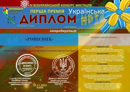 диплом Всеукраїнський конкурс мистецтв 2025